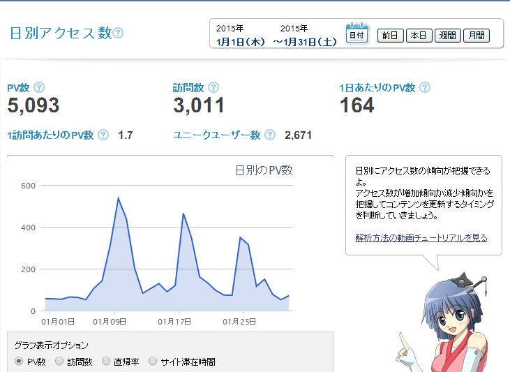 うーん・・・ちょっとスランプ気味ですね。でもアクセス数が伸び悩む時期はどのブログにもある。(というのを聞いたことがある。)継続こそ力なり。めげずに2015年も突っ走って行きます。とりあえず月間