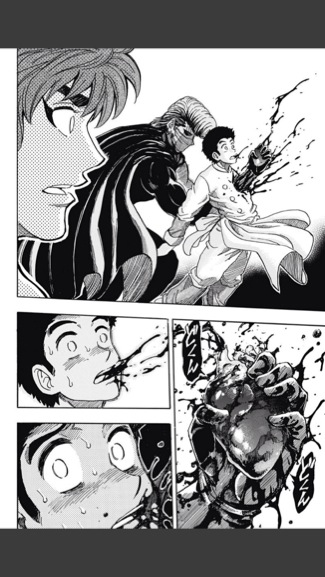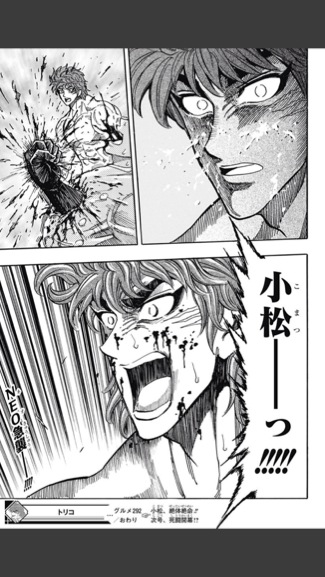 小松の心臓が鉄平に握りつぶされる回。小松は今も眠り続けてます。(1/28)心臓握りつぶす=死みたいな直球描写、嫌いじゃない。ハンターハンターも最初のほうでキルアが心臓握りつぶしてたなあ。冨樫先生仕事してください。