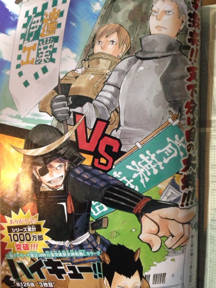 烏野以外の試合が描かれるのは初めてだよね!?大型セッター、響きがかっこいい。「そこはトス練しろよ!」。狂犬ちゃんこと京谷賢太郎くんの登場はまだおあずけ。(犬だけに)